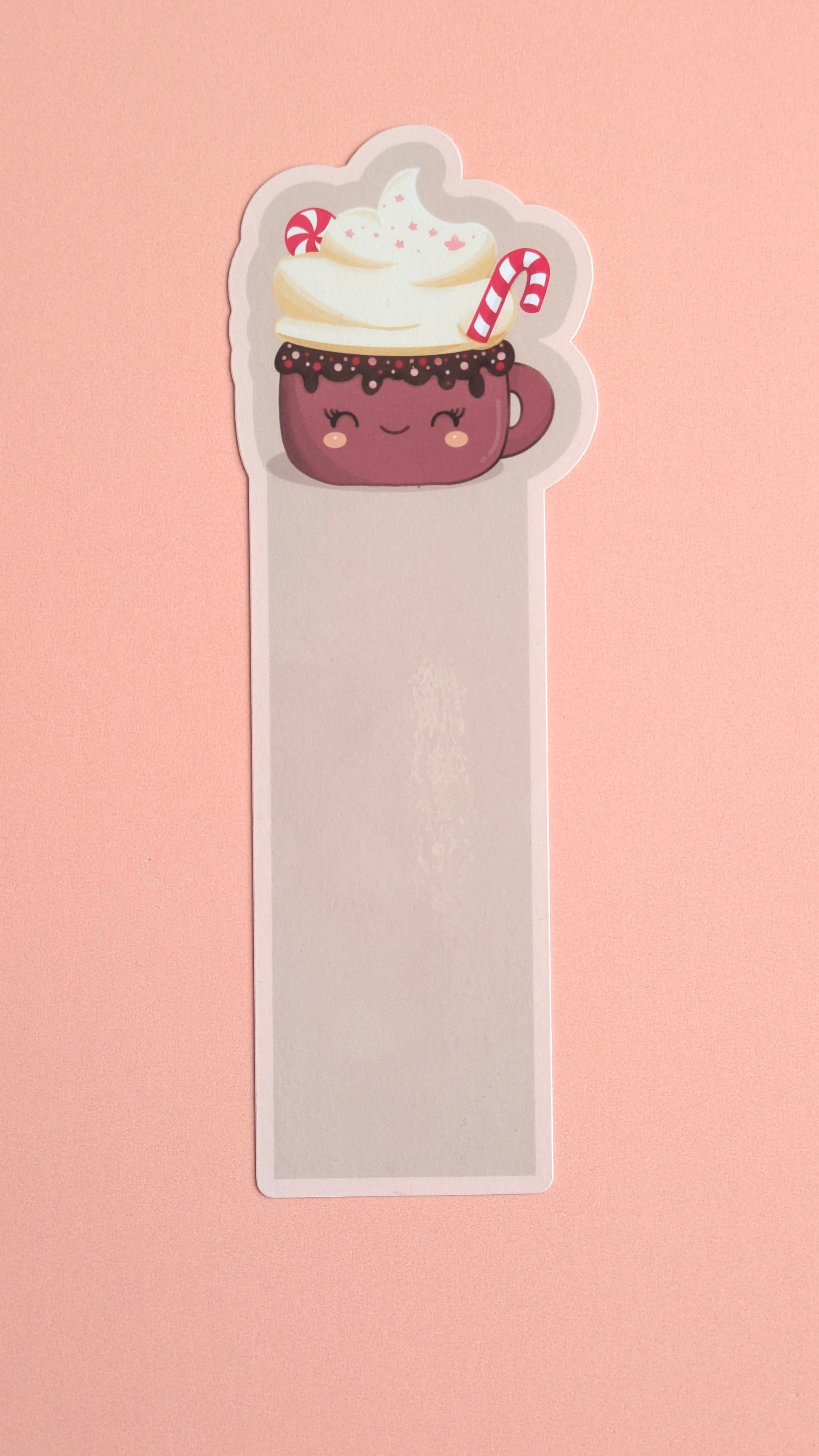 A warm, kawaii touch for winter reading — the Peppermint Dream Pink Fawn Gloss Bookmark features a hot chocolate mug with whipped cream and a soft fawn border, perfect for holiday books, seasonal gifting, and everyday page marking.
