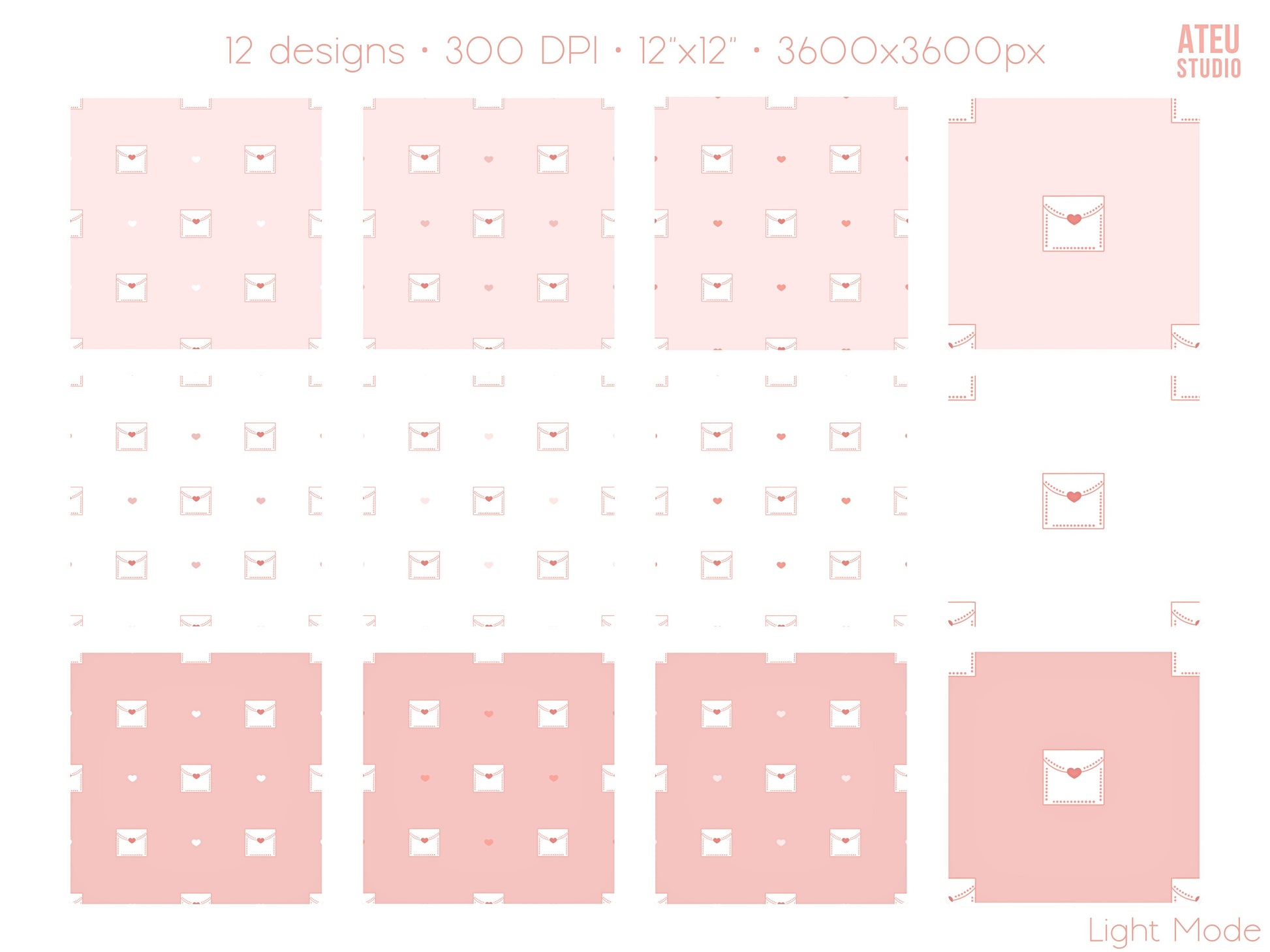Valentine Seamless Pattern Set – Cute Kawaii Envelope Design for Wrapping & Stationery